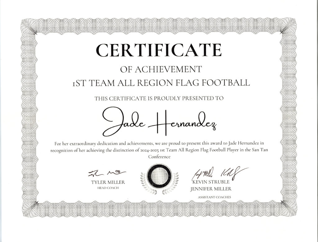 Outstanding Athletic Achievement Flag Football 2024-2025